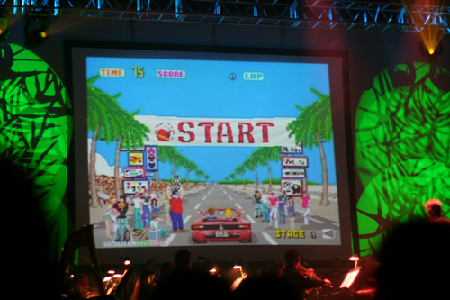 We were then introduced to our masters of ceremonies for the night, Tommy Tallarico. He, along with Jack Wall the conductor, are the creators of Video Games Live. Excitement filled the auditorium as the first screenshots were displayed. I was wondering how they were going to perform the non-existent soundtrack to Pong, but basically the orchestra mimicked the pong noises and this was truly your bleeps and bloops orchestra style. It was more amusing than anything, and the entire audience was laughing. Next up was a medley of all the classic arcade games. Themes included Gauntlet, Outrun, Duck Hunt, Missile Command, Donkey Kong, and many more. I tried to take pictures for each of them but there were just too many. A wave of nostalgia came over me, as I’m sure it did for most people — at least for most people over the age of twenty.
